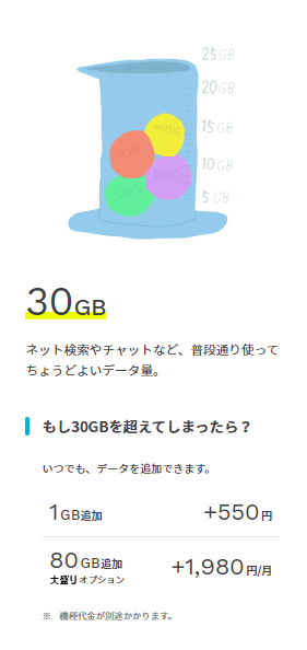 プランが30GBと110GBしか選べない